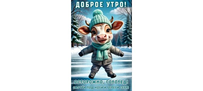 Открытка "ДОБРОЕ УТРО! ОСТОРОЖНО, ГОЛОЛЕД! СМОТРИ ПОД НОГИ И БЕРЕГИ СЕБЯ!"