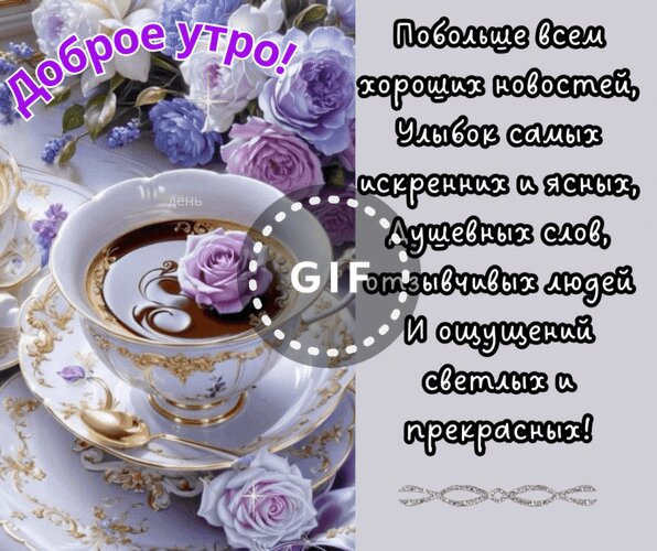 Анимированная открытка "Доброе утро! Побольше всем хороших новостей, улыбок самых искренних и ясных, душевных слов,"