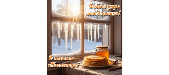 Открытка "Доброе утро понедельника! С началом Масленицы!"