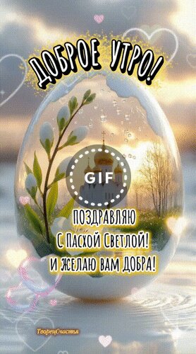Анимированная открытка "Доброе утро! Поздравляю с Пасхой Светлой! И желаю вам добра!"