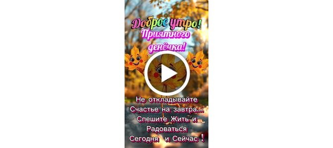 Видеооткрытка "Доброе утро! Приятного денечка! Не откладывайте счастье на завтра... Спешите жить и радоваться..."