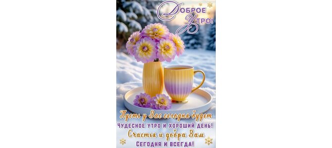 Доброе утро! Пусть у вас сегодня будет чудесное утро и хороший день! Счастья и добра вам сегодня и всегда.