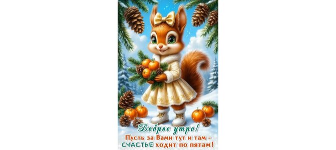 Открытка "ДОБРОЕ УТРО! ПУСТЬ ЗА ВАМИ ТУТ И ТАМ - СЧАСТЬЕ ХОДИТ ПО ПЯТАМ!"