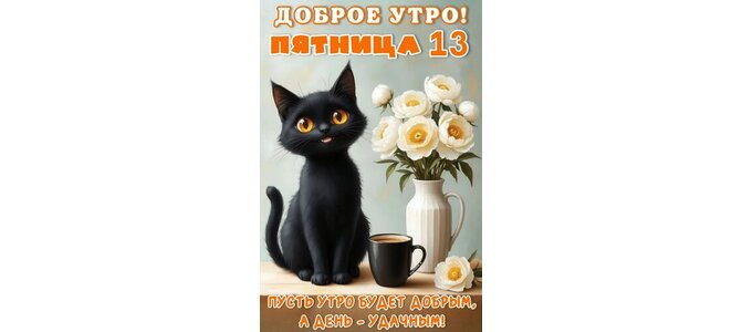 Открытка "ДОБРОЕ УТРО! ПЯТНИЦА 13.ПУСТЬ УТРО БУДЕТ ДОБРЫМ, А ДЕНЬ - УДАЧНЫМ!"