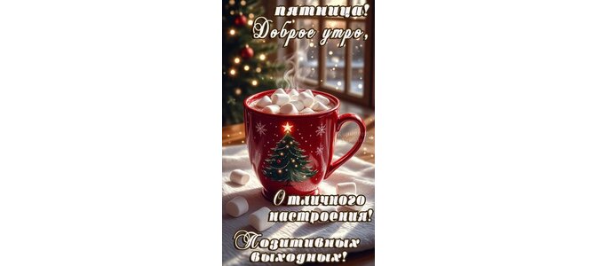 Теги:доброе утро пятница, пятница, дни недели, зима, снег, выходные, с выходными, новый год, отличного настроения, кофе, чашка кофе, елка, красивая картинка
