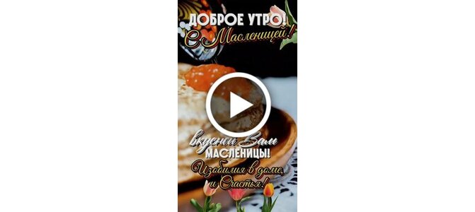 Видеооткрытка "Доброе утро! С Масленицей! Вкусной вам Масленицы! Изобилия в доме и счастья!"