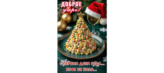 Открытка "ДОБРОЕ УТРО! С ПЕРВЫМ ДНЕМ ГОДА... КОФЕ НЕ БЫЛО..."