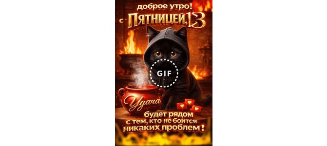 Анимированная открытка "Доброе утро! С пятницей, 13. Удача будет рядом с тем, кто не боится никаких проблем!"