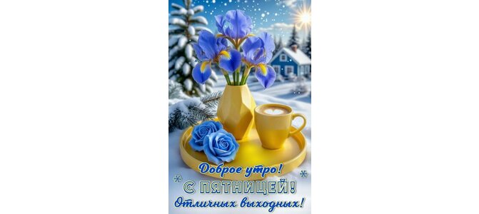 Открытка "ДОБРОЕ УТРО! С ПЯТНИЦЕЙ! ОТЛИЧНЫХ ВЫХОДНЫХ!"
