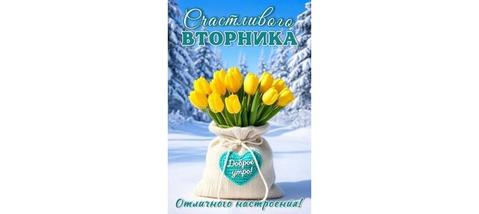 Открытка "ДОБРОЕ УТРО! СЧАСТЛИВОГО ВТОРНИКА! ОТЛИЧНОГО НАСТРОЕНИЯ!"
