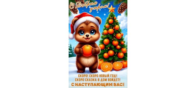 Открытка "ДОБРОЕ УТРО! СКОРО! СКОРО НОВЫЙ ГОД! СКОРО СКАЗКА В ДОМ ВОЙДЕТ! С НАСТУПАЮЩИМ ВАС!"