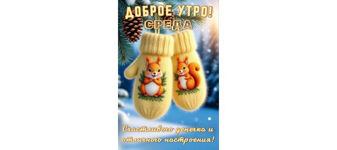 Теги:зима, доброе утро, дни недели, среда, варежки, белочка, счастливый день, отличное настроение