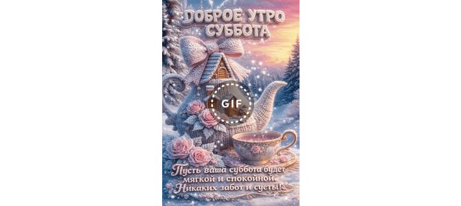 Анимированная открытка "Доброе утро, суббота. Пусть ваша суббота будет мягкой и спокойной. Никаких забот и суеты!"