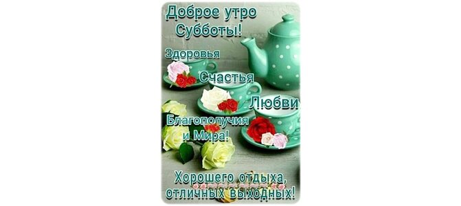 Доброе утро субботы! Здоровья, счастья, любви, благополучия и мира! Хорошего отдыха, отличных выходных!