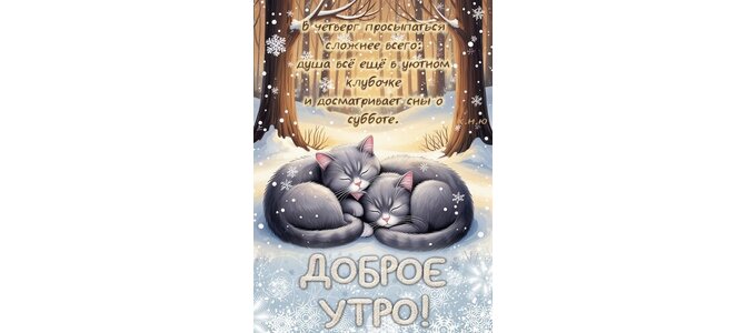 Открытка "Доброе утро! В четверг просыпаться сложнее всего: душа всё ещё в уютном клубочке и досматривает сны"
