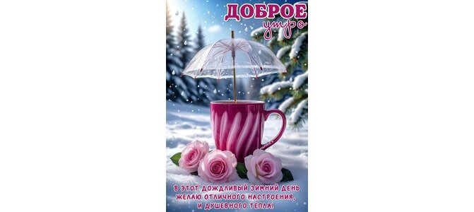 Открытка "ДОБРОЕ УТРО! В ЭТОТ ДОЖДЛИВЫЙ ЗИМНИЙ ДЕНЬ ЖЕЛАЮ ОТЛИЧНОГО НАСТРОЕНИЯ, И ДУШЕВНОГО ТЕПЛА!"