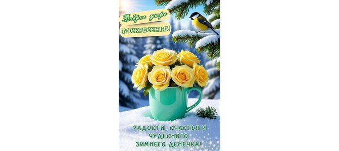 Открытка "ДОБРОЕ УТРО ВОСКРЕСЕНЬЯ! РАДОСТИ, СЧАСТЬЯ И ЧУДЕСНОГО ЗИМНЕГО ДЕНЕЧКА!"