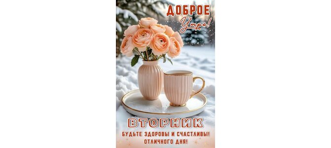 Открытка "ДОБРОЕ УТРО! ВТОРНИК. БУДЬТЕ ЗДОРОВЫ И СЧАСТЛИВЫ! ОТЛИЧНОГО ДНЯ!"