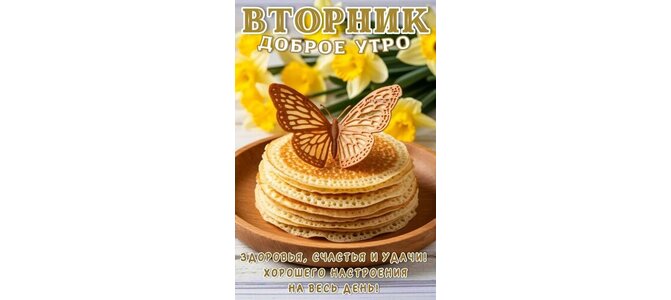 Теги:зима, весна, доброе утро, вторник, дни недели, блины