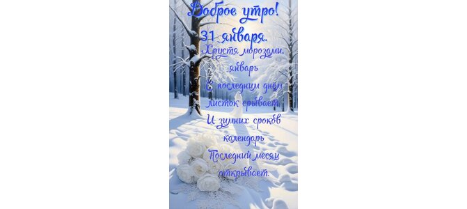 Открытка "Доброе утро. Хрустя морозами январь. С последним днем листок срывает"