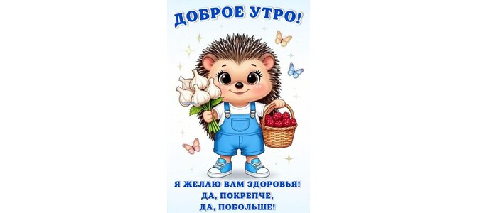 Открытка "ДОБРОЕ УТРО! Я ЖЕЛАЮ ВАМ ЗДОРОВЬЯ! ДА, ПОКРЕПЧЕ, ДА, ПОБОЛЬШЕ!"