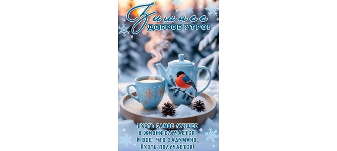 Открытка "ДОБРОЕ ЗИМНЕЕ УТРО! ПУСТЬ САМОЕ ЛУЧШЕЕ В ЖИЗНИ СЛУЧАЕТСЯ, И ВСЕ, ЧТО ЗАДУМАНО, ПУСТЬ ПОЛУЧАЕТСЯ!"