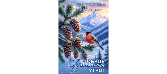 Открытка "Доброе зимнее утро! Воскресенье. Чудесного дня!"