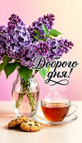Теги:доброго дня, день, сирень, чай, вкусняшка, печенье, букет цветов, красивая картинка, пожелания на каждый день