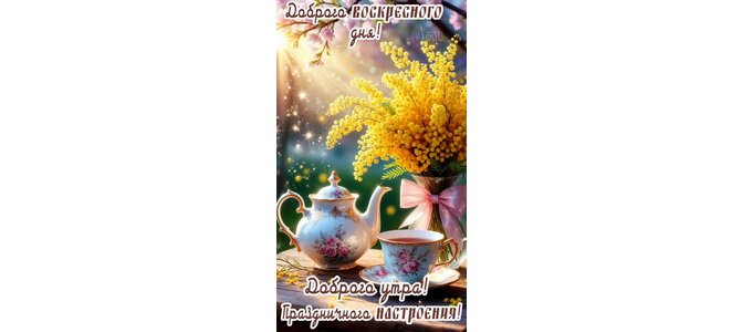 Теги:доброго праздничного утра, с 8 марта, воскресенье, дни недели, цветы, мимоза, чай, чашка чая, праздничного настроения, женский день