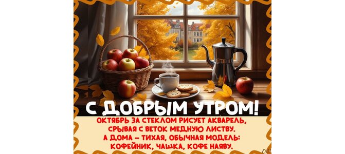 Теги:день, добро, доброго дня, доброго утра, кофе, окрябрь, ольга марк, пожелание, радость, с добрым утром, с новым днём, удачного дня, улыбнись