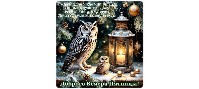 Вечер радость пусть приносит, лишь тоску он заберет, все печали пусть уносит, счастье в дом к вам приведет. Доброго вечера пятницы!