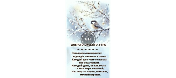 Доброго зимнего утра. Новый день нам приносит надежды, сомненья и планы. Каждый день чем-то новым нас всех удивит. Каждый день, он как гость в этом мире желанный, нас чему-то научит, поможет, мечтой наградит.