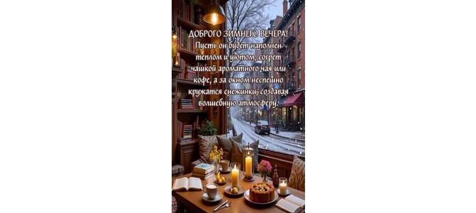 Открытка "Доброго зимнего вечера! Пусть он будет наполнен теплом и уютом,согрет чашкой ароматного чая или кофе"