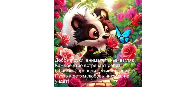Теги:добрые руки, внимательный взгляд каждое утро встречает ребят обнимет, проводит, утешит, поймет, пусть, детям, любовь, никогда, уйдет
