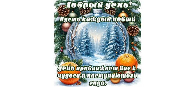 Добрый день! Пусть каждый новый день приближает Вас к чудесам наступающего года!