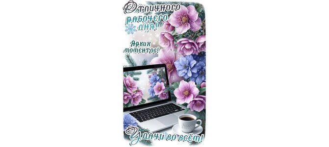 Теги:добрый день, день, цветы, ноутбук, кофе, чашка кофе, позитив, удадчи, красивая картинка, пожелания на каждый день, снег, зима, ярких моментов