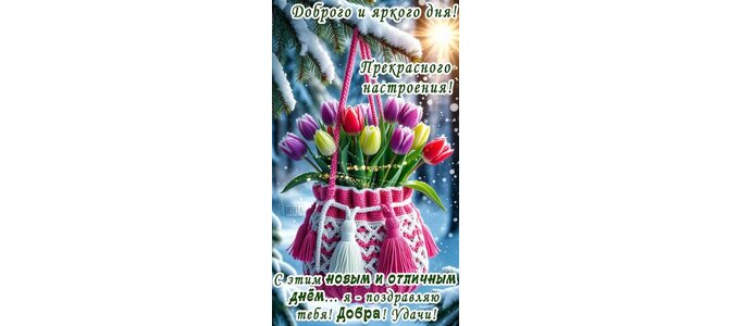 Доброго и яркого дня! Прекрасного настроения! С этим новым и отличным днём... я - поздравляю тебя! Добра! Удачи!
