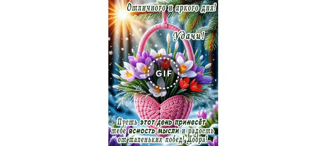 Теги:добрый день, гифка, анимация, позитив, корзина цветов, цветы, удачи, пожелания на каждый день, снег, зима, краивая анимация, добра, яркого дня