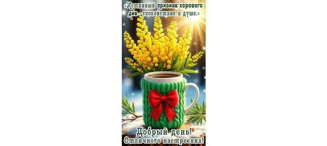 Теги:добрый день, день, чашка кофе, мимоза, цветы, пожелания на каждый день, циата, мотивация, про настроение, весна, зима, красивая картинка