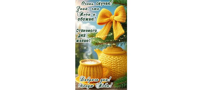 Теги:добрый день, день, чашка кофе, чайник, ель, кофе, целую тебя, отличного дня, тебя я обожаю, я скучаю по тебе, пожелания на каждый день, солнечно