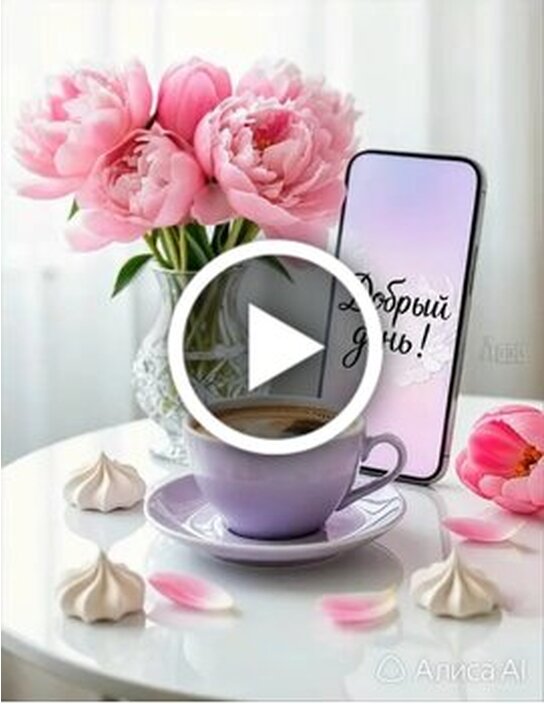 Теги:добрый день, день, цветы, пионы, кофе, сотовый телефон, видео пожелание, видео с музыкой, пирожное, вкусняшка, пожелания на каждый день