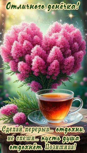 Отличного денёчка! Сделай перерыв, отдохни, не спеши... пусть душа отдохнёт. Позитива!