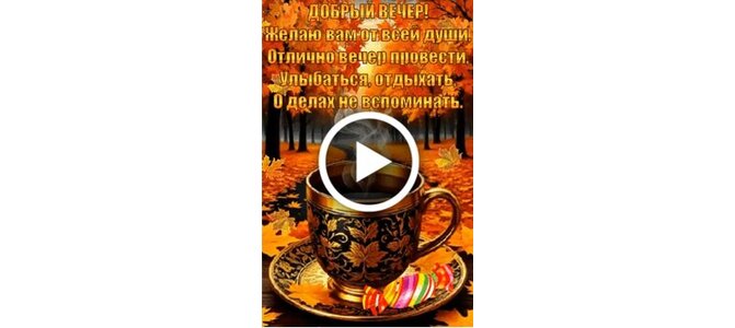 Добрый вечер! Желаю вам от всей души, отлично вечер провести. Улыбаться, отдыхать, о делах не вспоминать.