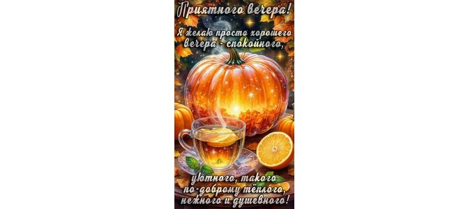 Приятного вечера! Я желаю просто хорошего вечера - спокойного, уютного, такого по-доброму теплого, нежного и душевного!