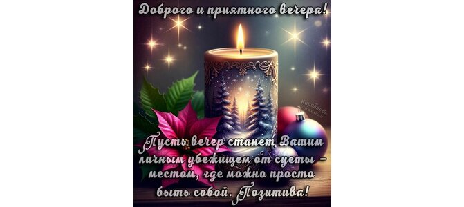 Теги:добрый вечер, вечер, цветы, свеча, зима, пожелания на каждый день, про позитив, новогодние игрушки