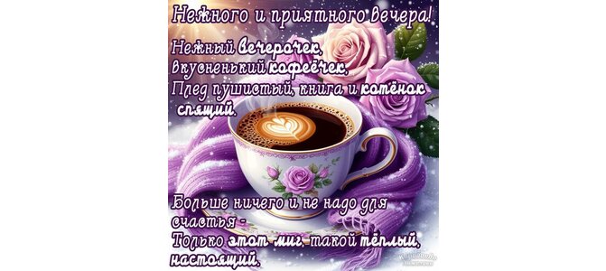 Теги:добрый вечер, вечер, кофе, чашка кофе, цветы, розы, зима, снег, пожелания на каждый день, стихи, мотивация, красивое пожелание
