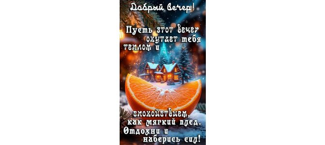 Добрый вечер! Пусть этот вечер окутает тебя теплом и спокойствием, как мягкий плед. Отдохни и наберись сил!