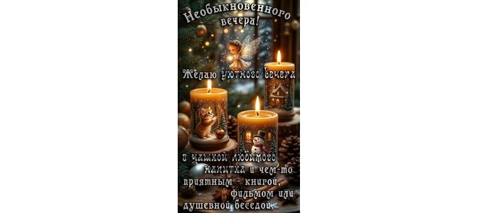 Необыкновенного вечера! Желаю уютного вечера в чашкой любимого напитка и чем-то приятным - книгой, фильмом или душевной беседой.