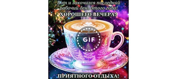 Вот и закончился последний рабочий день этого года! Хорошего вечера! Приятного отдыха!