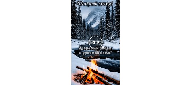 Теги:добрый вечер, вечер, анимация, гиф, здоровья, пожелания на каждый день, позитив, огонь, река, горы, зима, снег, красивая картинка
